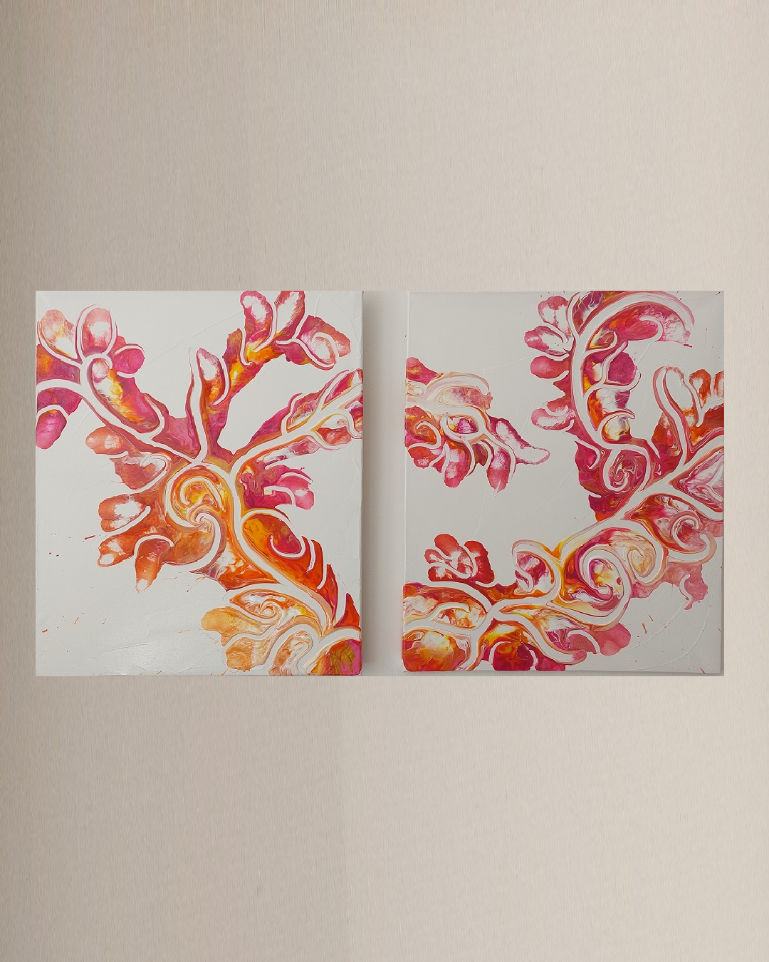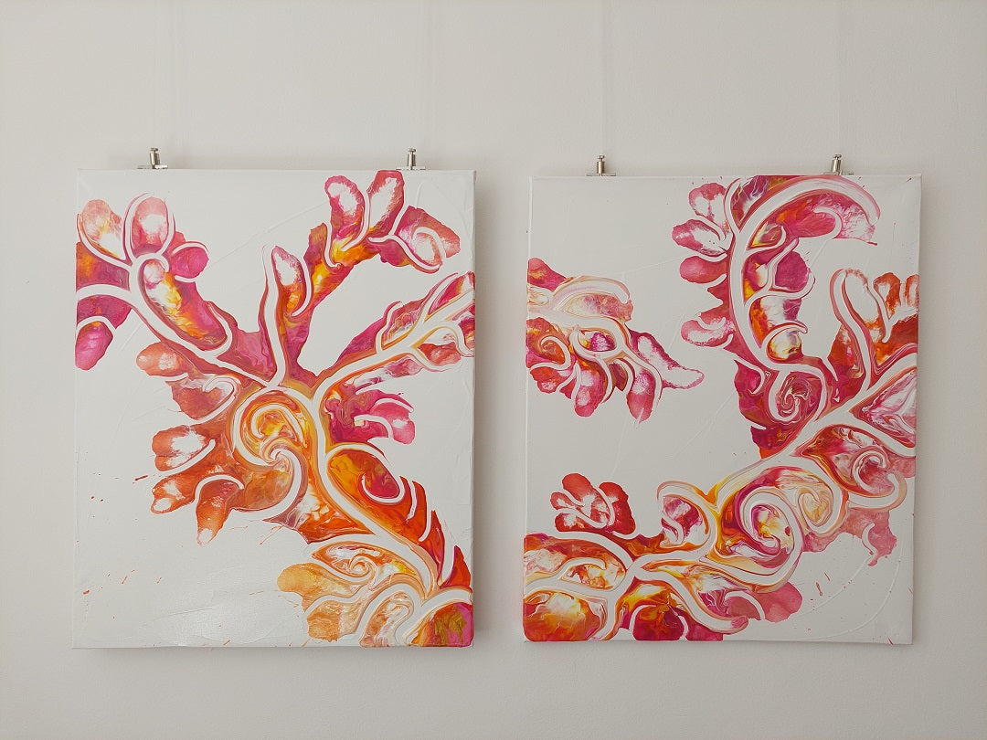 Acrylic painting on canvas, manufactured with Dutch pour technique. The painting consists of two canvases of 50x60cm each.