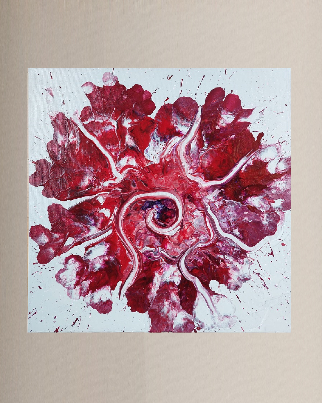 Acrylic painting on canvas, manufactured with Dutch pour technique. The canvas measures 60x60cm.