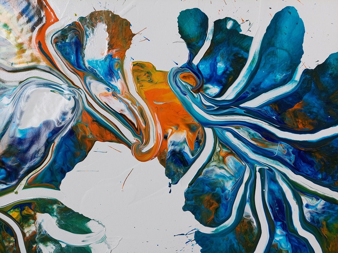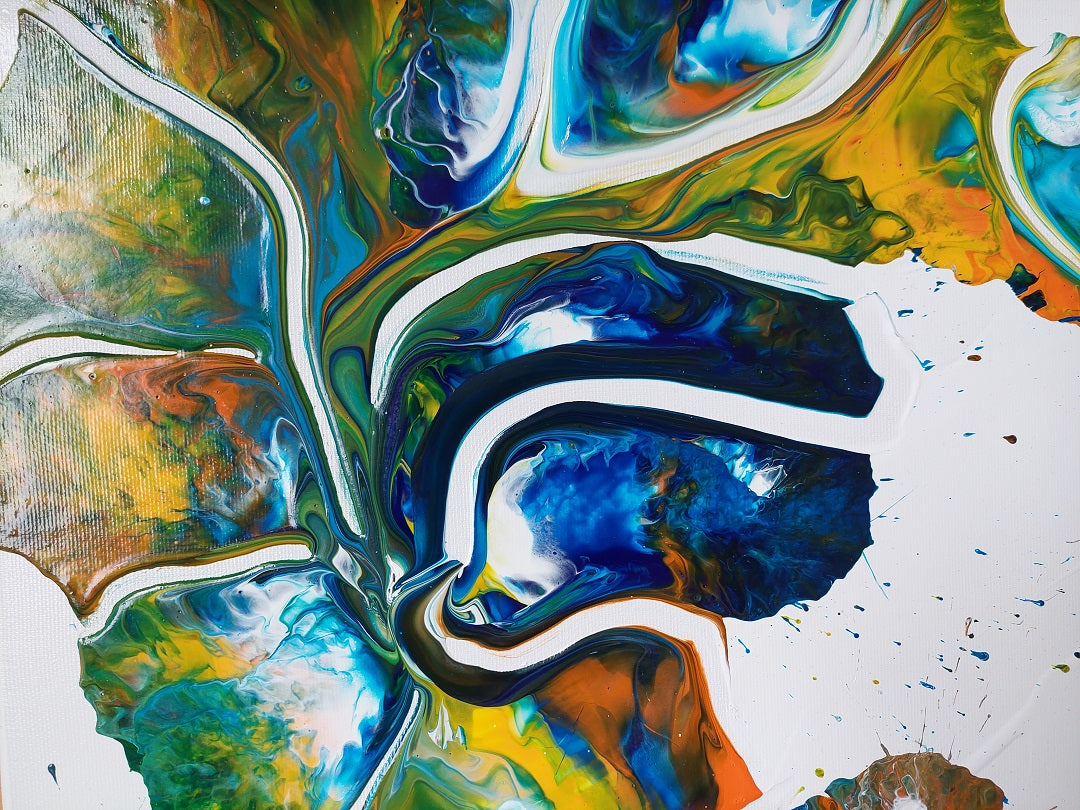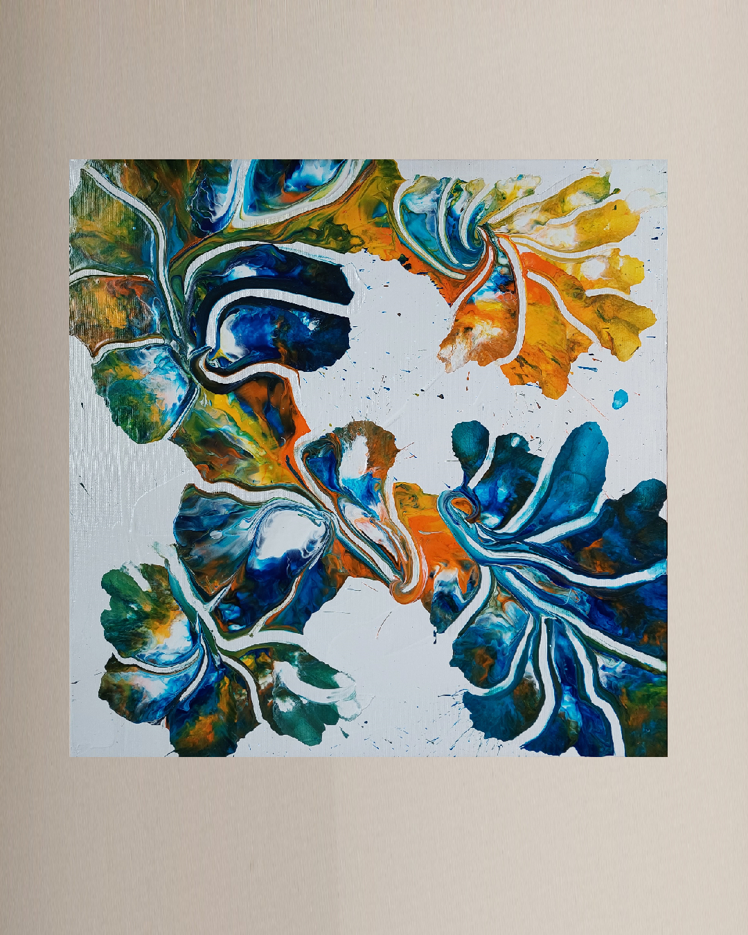 Acrylic painting on canvas, manufactured with Dutch pour technique. The canvas measures 60x60cm.