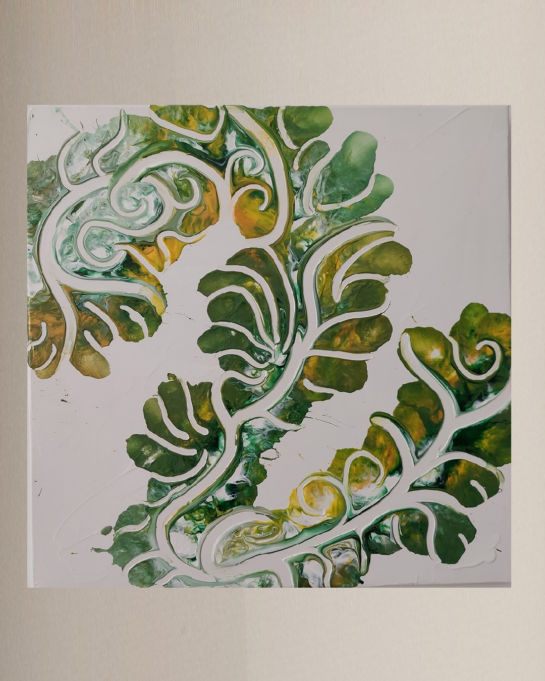 Acrylic painting on canvas, manufactured with Dutch pour technique. The canvas measures 60x60cm.
