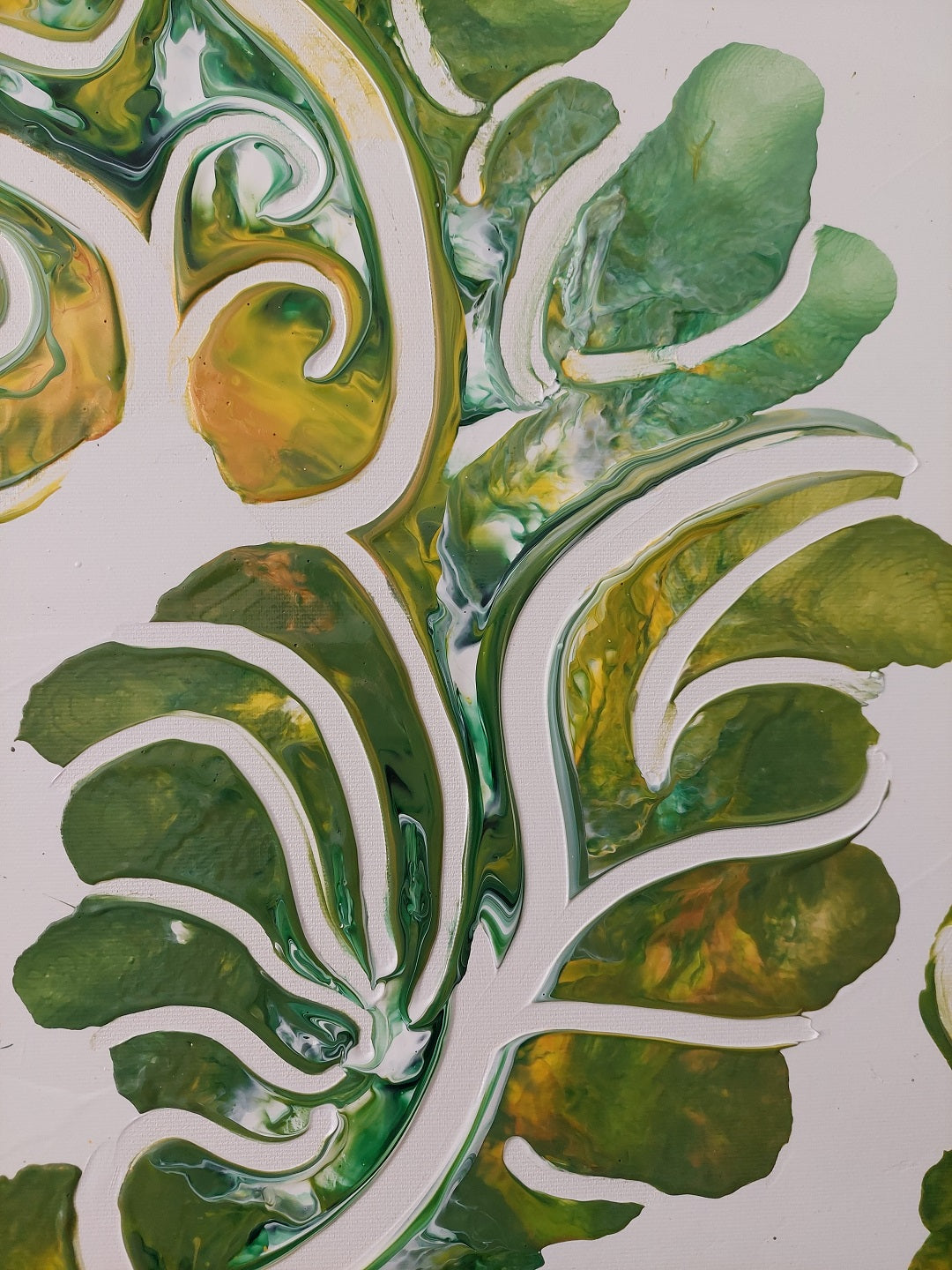 The painting was created with high-quality Amsterdam acrylic paints, pouring medium and sealed with satin spray paint.