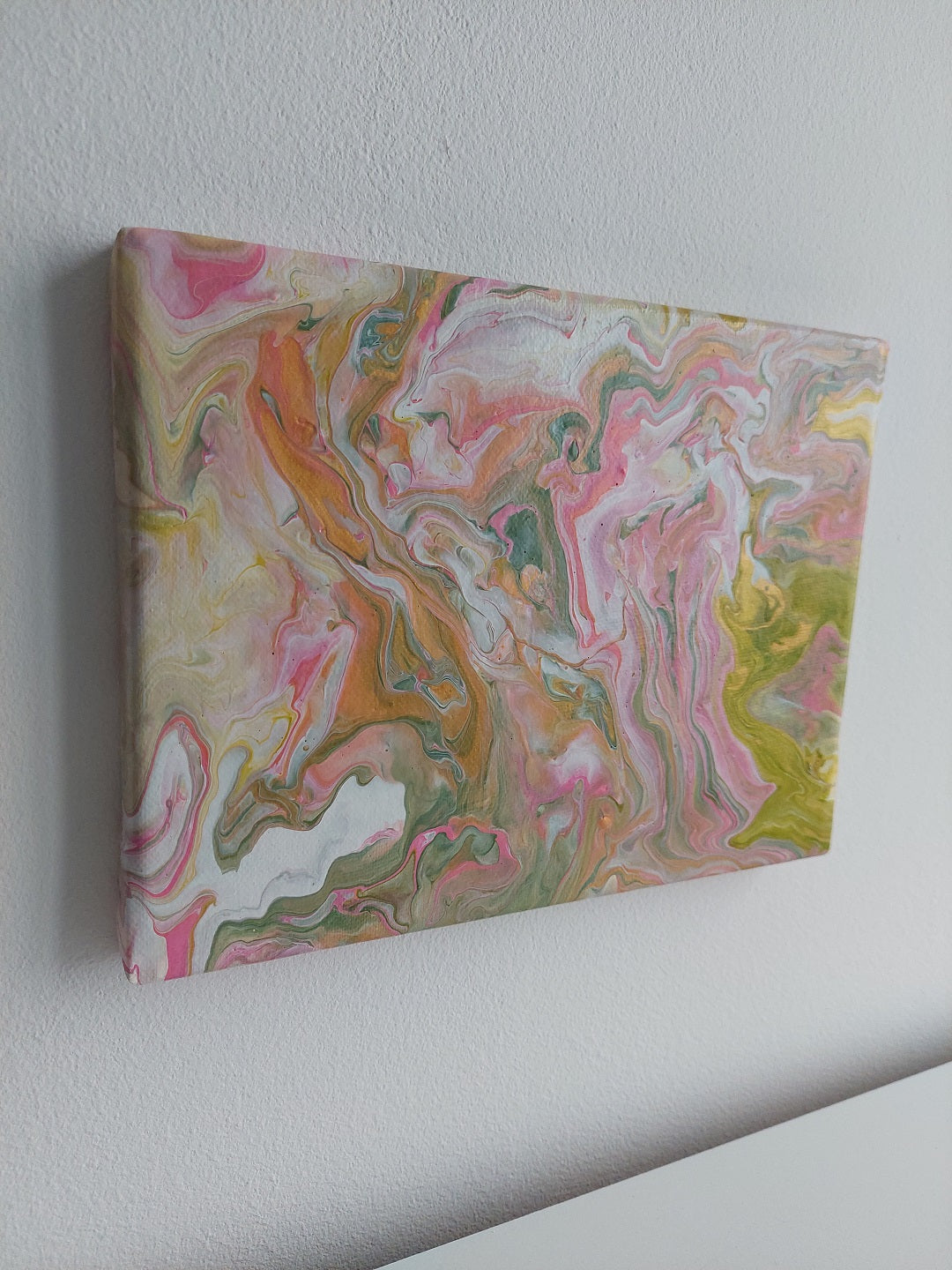Acrylic painting on canvas, manufactured with acrylic pouring technique. The canvas measures 24x18cm.