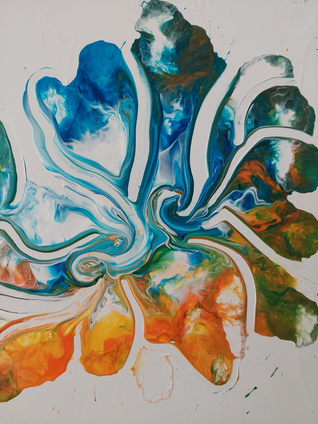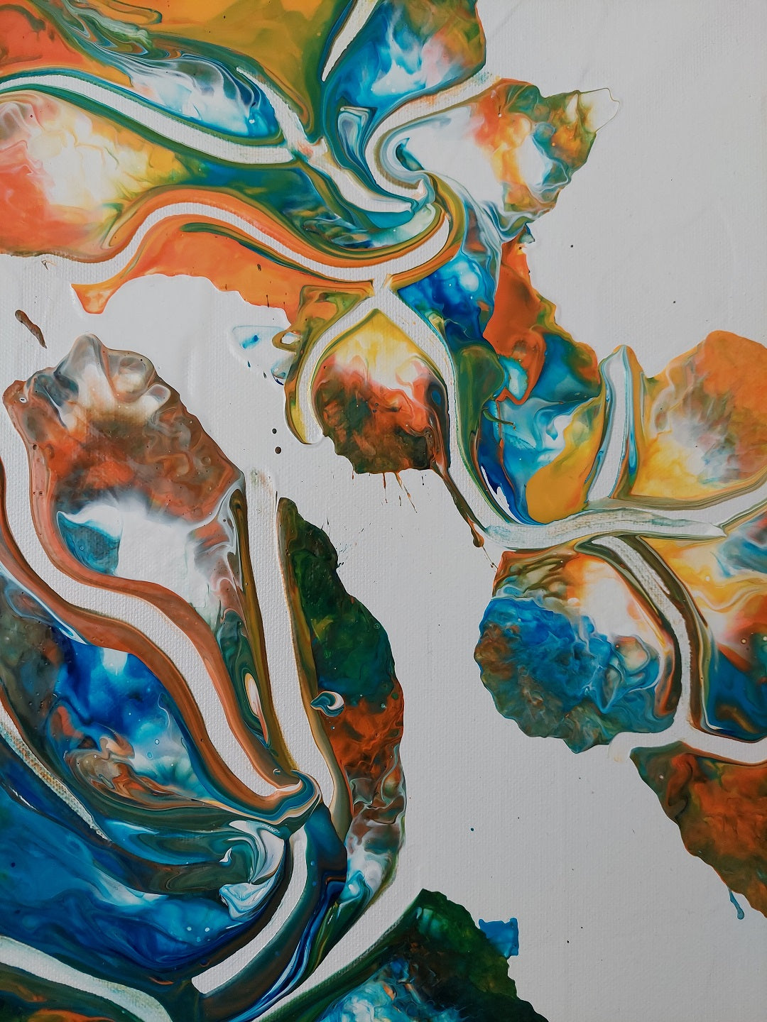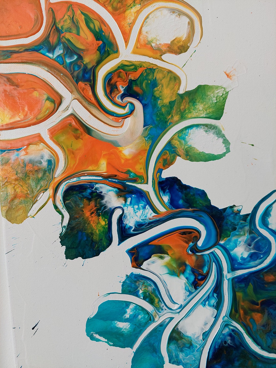 The painting was created with high-quality Amsterdam acrylic paints, pouring medium and sealed with satin spray paint.